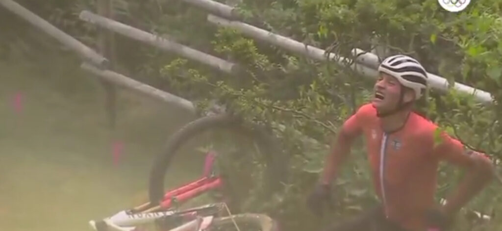 Mathieu van der Poel llegaba como uno de los grandes favoritos para quedarse con la victoria en la prueba de MTB de Tokio 2020, sin embargo, mientras completaba la primera vuelta sufrió una terrible caída que lo alejó de cualquier posibilidad.