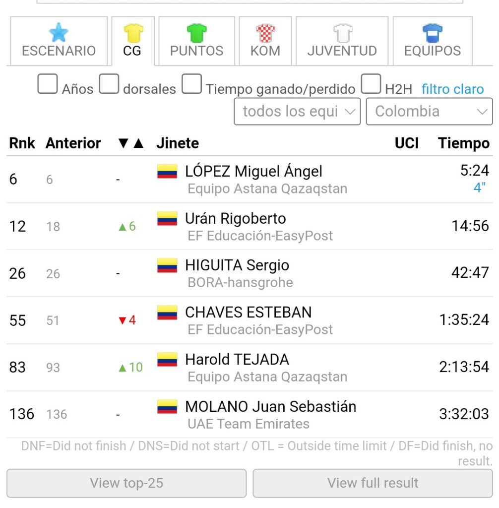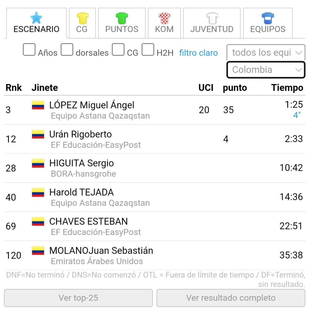Por parte de Colombia, el hombre que llegaba a este día 15 más fuerte y más consolidado, sería Miguel Ángel López, quien ayer consiguió un segundo lugar en la etapa, llegando solo 8 segundos más tarde que Carapaz. Así, hoy la gran interrogante sería si podría llegar con un buen ritmo para afrontar una jornada aún más dura.
