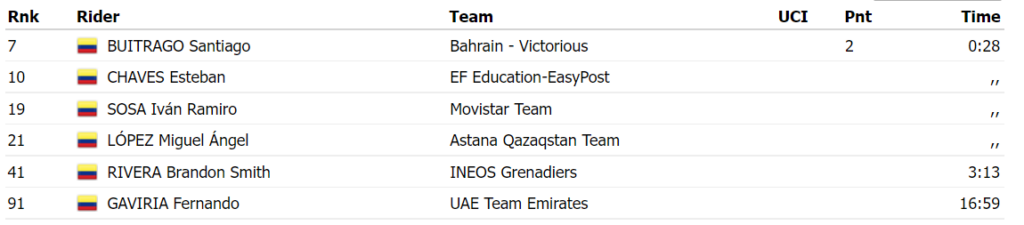Al final Sivakov sacó 28 segundos de diferencia con Buitrago y sus rivales, pero no ganó la jornada. Fue Tronchon quien se la llevó. Los colombianos están bien ubicados en la general y esperan por Las Lagunas de Neila. Así les fue a los nuestros en la etapa 3:
