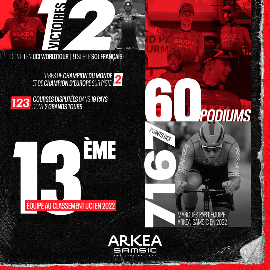 «¡Objetivo alcanzado! La estrategia deportiva desarrollada hace tres años ha dado sus frutos. Al final de la temporada 2022, culmina con una “victoria colectiva” para el equipo Arkéa Samsic, nuestra adhesión al UCI WorldTour por tres temporadas.