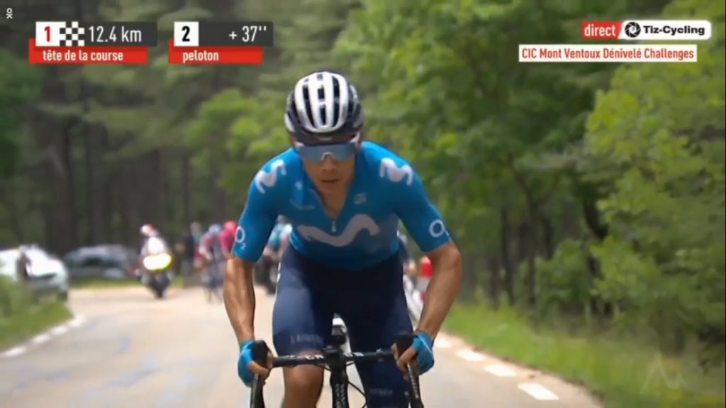 Miguel Ángel López ataca con mucha fuerza en el Mont Ventoux Dénivelé Challenge 2021 a falta de 12 km a meta. El colombiano lanzó un arranconazo que dejó a varios pedalistas sentados.
