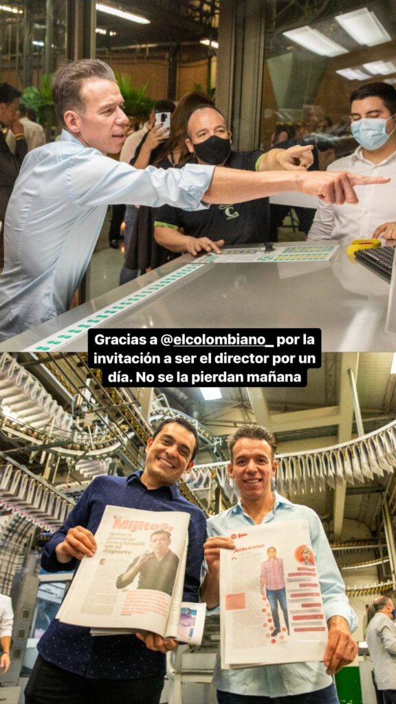 Y es que Rigo, por un día, será el director de noticias del medio El Colombiano, que está celebrando 110 años. Claro está, no lo hará en solitario, pero en definitiva, sorprende a más de uno. Urán ha sido elegido para cumplir esta tarea en compañía de Daniel Alejandro Hoyos (mejor conocido como Suso) y David Vélez, el creador de NuBank.