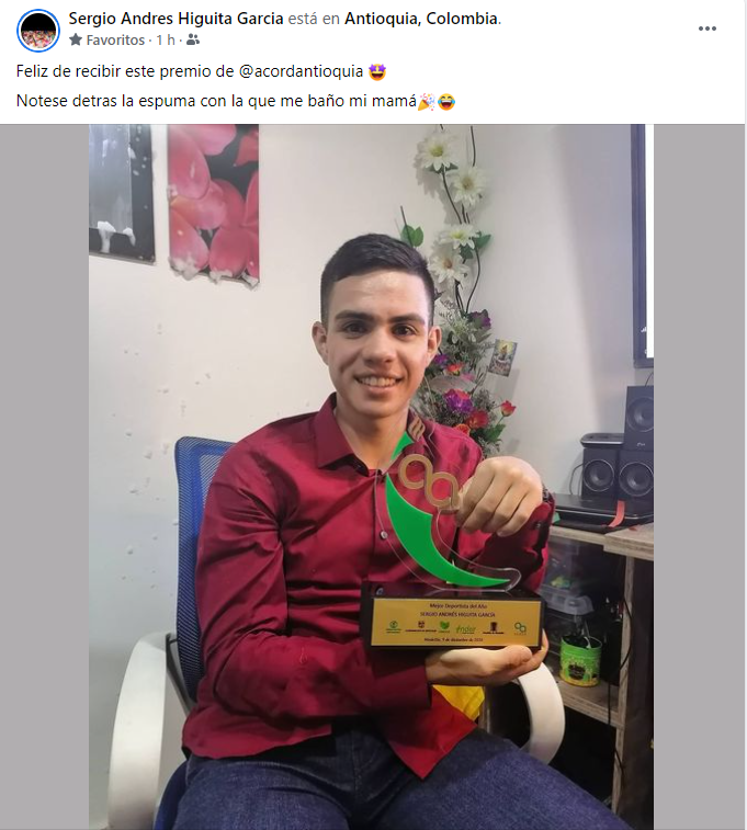 Por su gran año 2020, Sergio Higuita recibe este reconocimiento en Antioquia