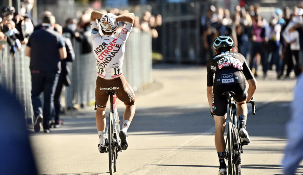 Vandrame atacó a 16 km de la meta, se fue en busca del triunfo de etapa, logrando la primera victoria de etapa para el AG2R Citroën Team.