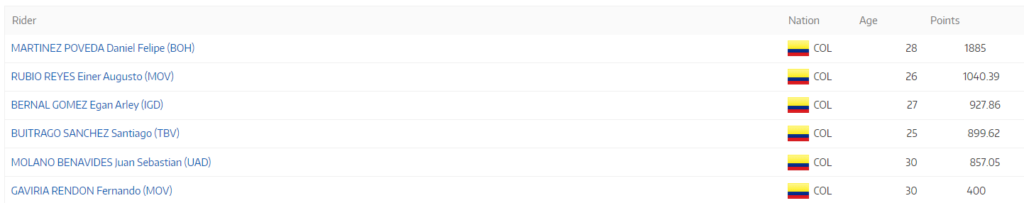 La UCI actualiza sus respectivos rankings, luego del Giro de Italia 2024 donde Tadej Pogacar confirma que domina el ciclismo actual, pero en el que luego de su podio también se oficializa que Daniel Martínez es el mejor ciclista de Colombia, en este momento.
