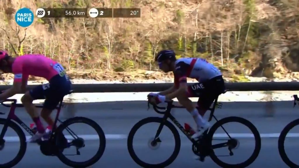 A group of 4️⃣ riders leads the peloton by 20 seconds.#ParisNice pic.twitter.com/DRQOCvcafM