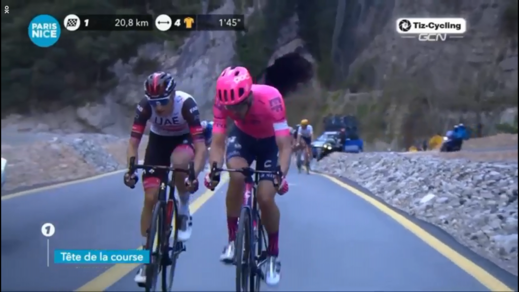 🇸🇮@rogla overtakes the groups of lagging riders but loses time on the peloton. The gap is now over 2 minutes. #ParisNice pic.twitter.com/0HEGkAHmhv