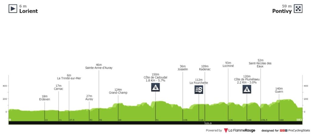 El trazado está dividido entre Lorient y Pontivy en una distancia de 182 km con dos ascensos de 4ta categoría y un sprint intermedio.