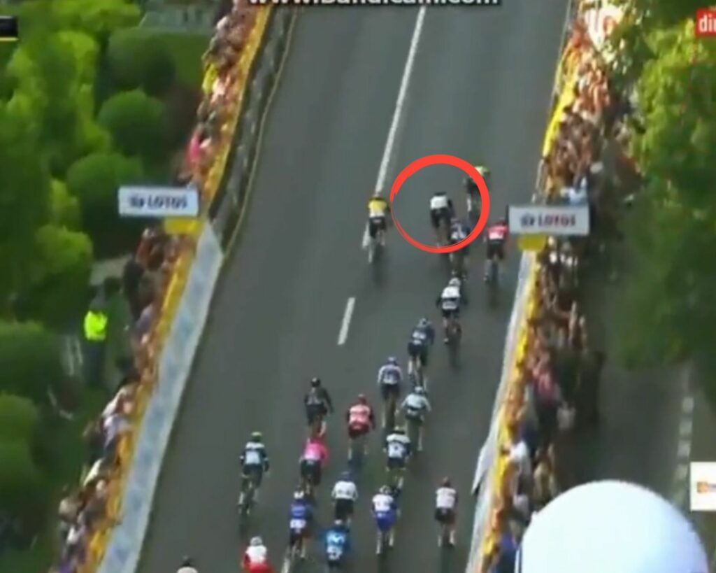 Asimismo los trenes para lanzar a los velocistas al final ya estaban casi conformados y avanzando a un nivel bastante fuerte. Gaviria logró remontar a varios de los rivales a pocos metros de la llegada con un sprint que saco desde atrás para con un golpe de riñón en la línea de meta rematar el gran trabajo de su equipo, así fue el momento: