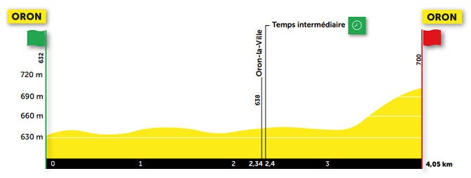 El prologo da la bienvenida a la edición 75° de la carrera helvética en Oron. 4. 5 km de una contrarreloj que al final propone una subida de al menos 1 km.