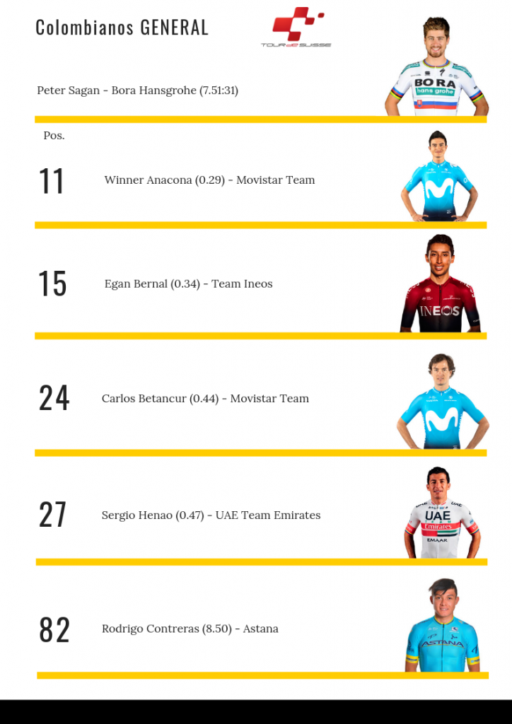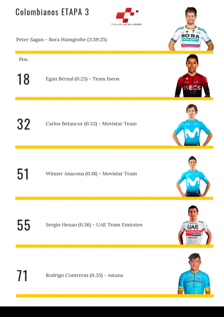 Acá puedes ver el Tour de Suiza: Clasificación colombianos etapa 3. El Tour de Suiza es el examen previo al Tour de Francia, allí están Enric Mas, Geraint Thomas, Fabio Aru y tal vez el ciclista más esperados por todos: Egan Bernal.