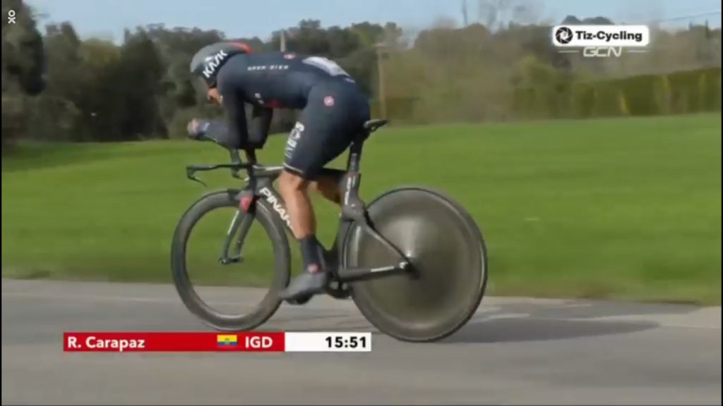 Carapaz fue de los últimos en salir marcando tiempos importantes en los puntos intermedios. Dennis se mantuvo en la silla caliente por mucho tiempo.
