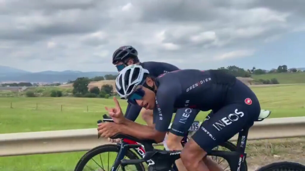 En el día de descanso, Bernal aprovechó para salir y hacer algunos kilómetros, antes de enfrentar los duros Lagos de Covadonga y la crono de Santiago de Compostela. Es esencial seguir con un ritmo de carrera.