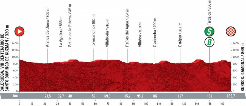 Caleruega. VIII Centenario de Santo Domingo de Guzmán da inicio a la segunda jornada de La Vuelta, la cual tiene un trazado de 166,7 km en un terreno llano que termina en la localidad de Burgos, Gamonal, será un día para sprinters.