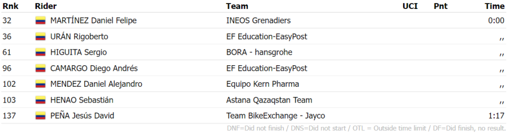 Al final los colombianos llegaron con el grupo principal y solo Jesús David Peña cedió tiempo: